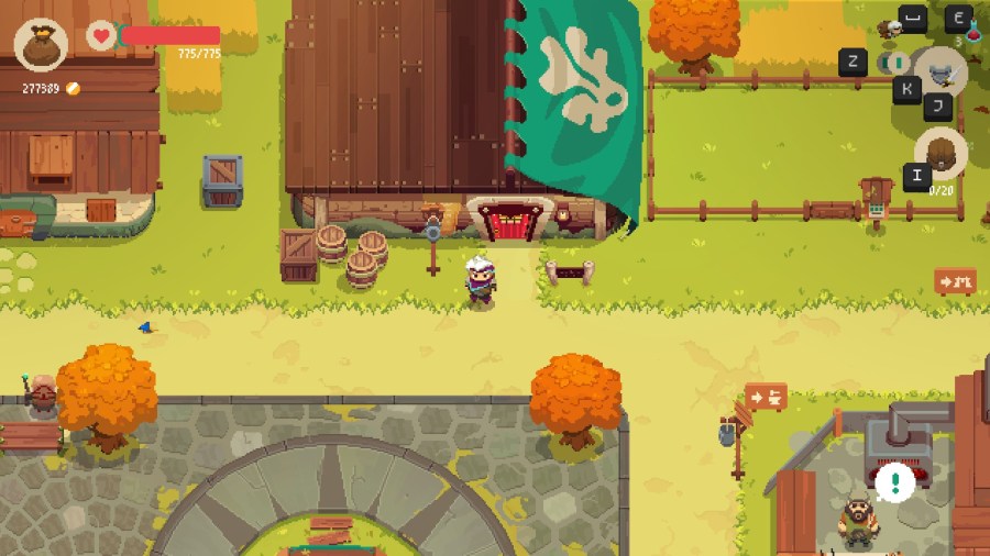 After you juice the patrons, there are upgrades for the shop as well: a sale bin to sell unwanted items at a percentage off, extra storage, a better bed for better sleep and additions of space to sell more items. There is also a bulletin board in the town square that offer vendors to build in your town, for a price. A blacksmith, a witch, a merchant, a traveller and a banker can all help the player on their quest to defeat the five dungeons.