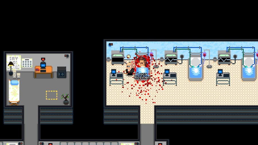 The game throws the player straight in with you, the coach, talking to the Receptionist about registering a team in the International League of Blood Sports (ILBS). It was an easy register until the Receptionist states that you do not have enough money BUT you do have an incredibly fresh kidney to donate. The screen goes black and you wake up strapped to a table with a guy ripping your kidney out. You then wake up with some money and a fully stocked area for training your enforcer, play maker, sniper and goalie, which you will have to evaluate and purchase.