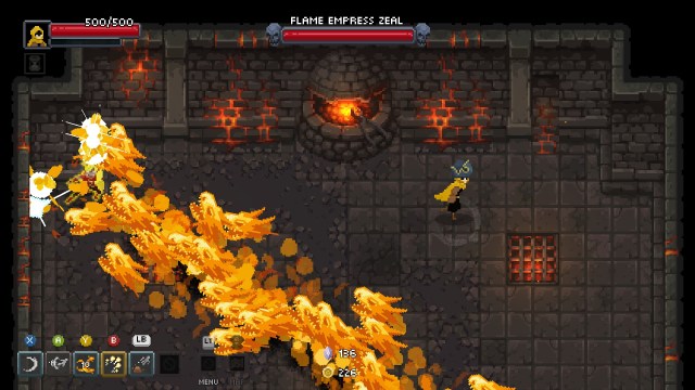 Combat encounters are usually quick and satisfying. Dashing is the key component to staying alive because enemies are also quick and they do in fact hit extremely hard. Players have life points and it dwindles quickly when faced with a room crowded with hostiles. Swordsmen,archers, mages and various NPC’s fill the halls of the six dungeons. Each two subsections of a dungeon end with a “council member” fight that tests your knowledge of the correlating element.