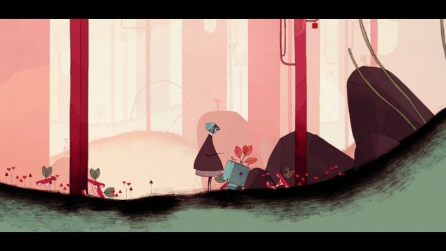 Gris’ art is based solely around watercolor inspired by Conrad Roset. The world, in the beginning, is devoid of color but as you traverse the world and confront statues of a mysterious woman, beautiful splatters of colors litter the screen. Forests become a lush green, the desert becomes a harsher red, the water logged ruins become a deep blue. Gris’ style is on par with some of the most beautiful art that I have ever seen in a video game.