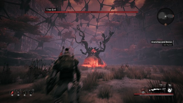 The player has two slots for ranged weapons: a handgun (pistol or sub-machine gun) and a long-gun (sniper rifle, shotgun, etc). Each weapon has a mod slot that is activated when dealing the appropriate amount of damage. A plant that takes aggro, fire balls that apply burn and the ability to summon skulls to lay down fire on enemies are only a few mods in Remnant. Ranged weapons, though, are not your only outlet of destruction, there are also a wide range of melee weapons to choose from. Hammers, scythes, spears and battle axes hit with ferocity, making enemies stagger and applying different status effects.