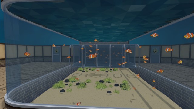 Damn there are a lot of fish in this game. There are more than twenty different types of fish; making it more than one-hundred different species of fish. Mega Aquarium offers Damsels, Groupers, Sharks and Rays to Schooling, Crustaceans, soft coral and Anemones. All of the fish act differently and are all incredibly beautiful. The Clown Fish are that perfect orange, the Moray Eel bobs its head while its mouth swings open, the Blue Tangs are of a deep blue. Twice Circled took the time to iron out all the aspects that make each species different and it shows when in first person inspecting the exhibits.