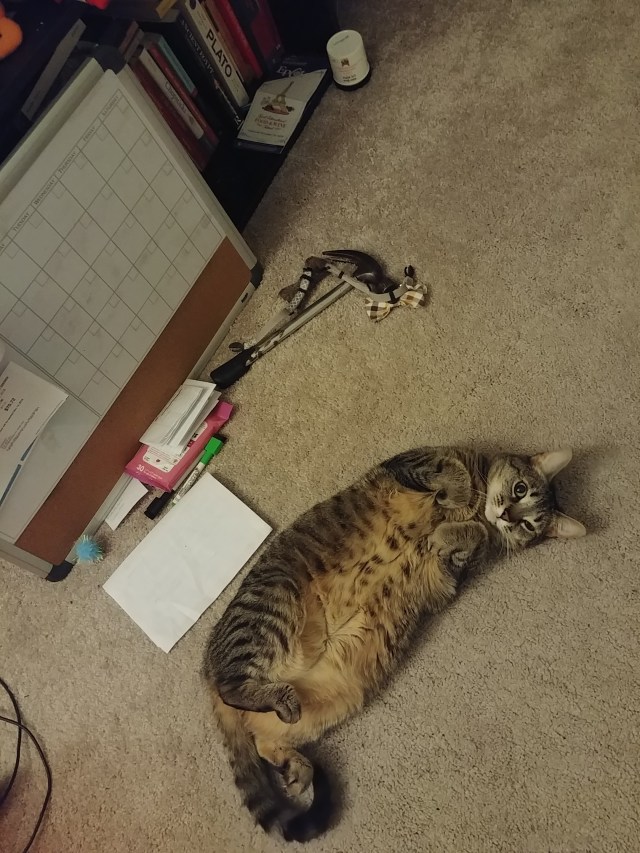 Except when my cat walked into the room and screamed at me for food while I was focusing on looking up to find something in the trees.