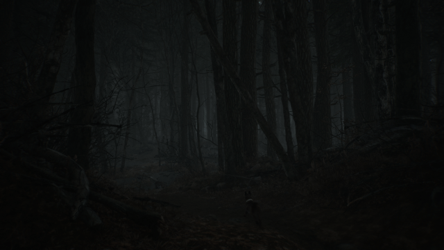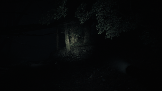 The forest is really fucking creepy. The atmosphere is top notch here. The UI is very limited so that the player gets to enjoy everything the pitch black forest has to offer. The forest is teeming with sounds of various animals and at times the deafening silence that incorporates nothing but Ellis’ labored breathing and Bullet’s growls and barks kept me on edge. The areas that you stumble upon while traveling throughout the forest are equally as creepy. The sawmill that has a single light on, a makeshift tent with blood scattered around it allows the imagination soar.