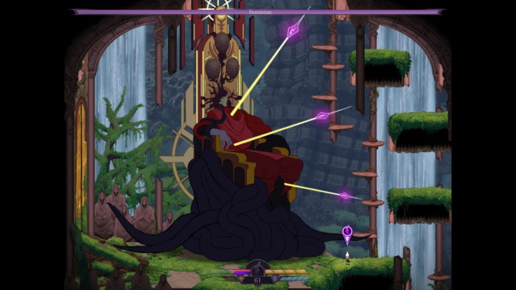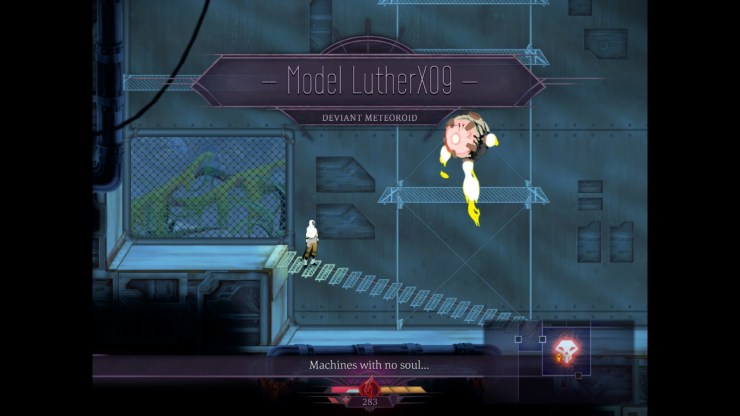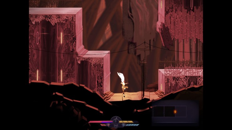 What makes Sundered stand out more than any game that I have played recently is the hand drawn animations. The enemies lurch, leap and scuttle which imbued feelings of uneasiness. The main section bosses look fantastic, especially Hysteria. Each region boss towers over the protagonist. The scale is fantastic. Eshe is only an ant in comparison. Main bosses are unique and have an evolving set of attacks that are easy learn-able, but they hit hard. A few missteps and Eshe is back at square one.