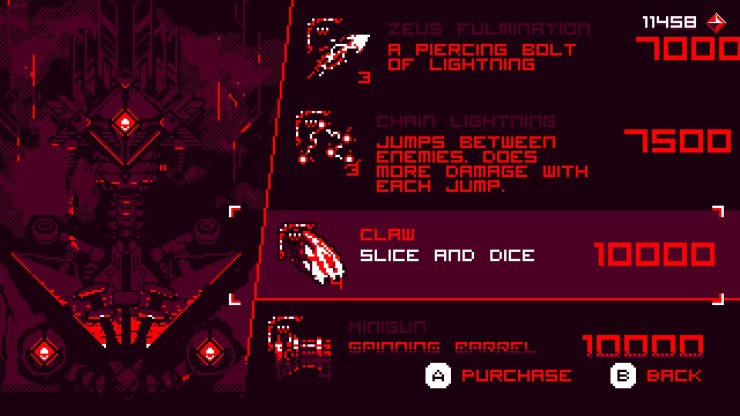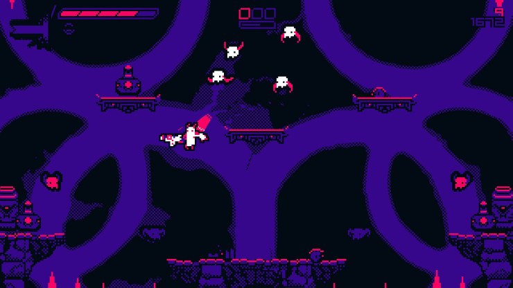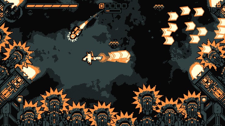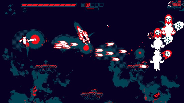 You traverse through four different worlds that encompass enemies that range from flying skulls, flying saw-blade machines to brains and other creepy shit that I do not think I can accurately describe. You jump around, frantically dashing through gun shots and enemies to find a breath to scan the level for a proper plan of attack. A lot goes on during these short levels and it does not necessarily borderline heart pounding excitement but there is a short amount of satisfaction to be had when you succeed in completing a level.
