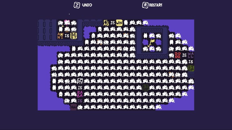 Baba moves with the help of the directional buttons and Z rewinds and R restarts the level, and that is it. If you make a minor mistake, press Z and re-do the move. Fuck it all up? R is for restart. It’s easy to grapple the controls when it is literally six buttons.