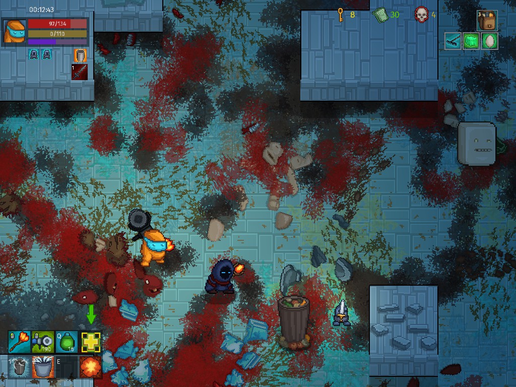 Trash Squad is a game that reminds me of Nuclear Throne, but at a super discounted price. Not saying in any way that Trash Squad is bad, it is in fact a great game. It does everything well: the shooting and gameplay is smooth and fun, items are unique and offer fun alternatives to each encounter with enemies and difficulty delivers a good amount of fun vs frustration.