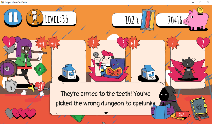Knights of the Card Table is an indie, dungeon crawling, card battler that released in 2018 under Ponywolf LLC, who also developed it. KotCT is on android, apple devices and PC. The game retails for a crisp fiver.