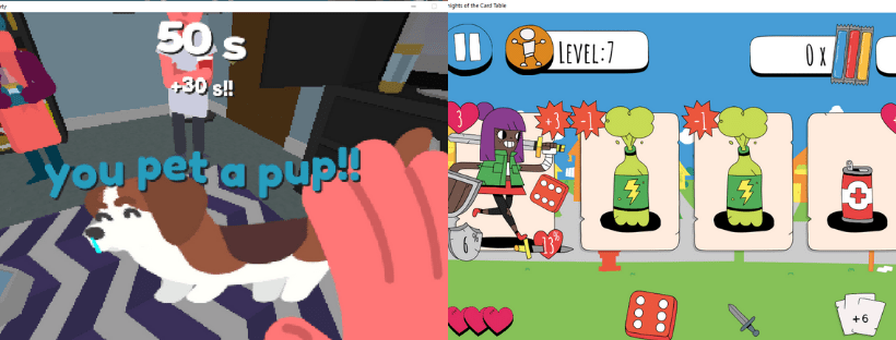 Anyway, I have had itch.io installed on my computer for a while and I accumulated a lot of games even before I donated money to acquire the million games that came along with the bundle. This week I decided that I would play two games. The first game that I chose was a game that both my fiance and I could play (because I like when she plays the games I talk about). The first game, is a game that everyone can relate to because there had to be a moment in time that finding a pet a party was a higher priority than talking to people. The second, was a game that I felt was going strong in the beginning but as the game continued I realized that the main mechanic, RNG, was WAYYYYY too much for me to handle. This week I struggle to find animals in an abnormally large home in Pet the Puppy at the Party and battle against man eating traffic cones in Knights of the Card Table!
