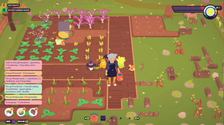 Ooblets, from the looks and feel of it, it is your run-of-the-mill life simulation game. You are poor and you need to make your way up in the world. This is done through farming and filling orders to help export goods to other towns in the world.