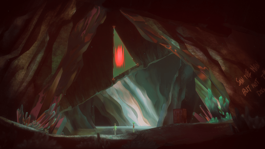 You are Alex, a blue haired teenage girl, who is travelling with her friends, Ren and Jonas, to Edward’s Island to party hard, pass out and wake up the next morning an adult. While on the beach Alex, Jonas and Ren enter a cave to take part in a local superstition of “contacting the dead” through the radio. The cave flickers and voices resonate through the cave and curious Jonas descends into the cave with Alex on his tail. The cave ends with an open area with a floating triangle that is visible to both characters and Alex tries to tune into the frequency of the triangle. This sets forth the events that the player will experience throughout the rest of the game.