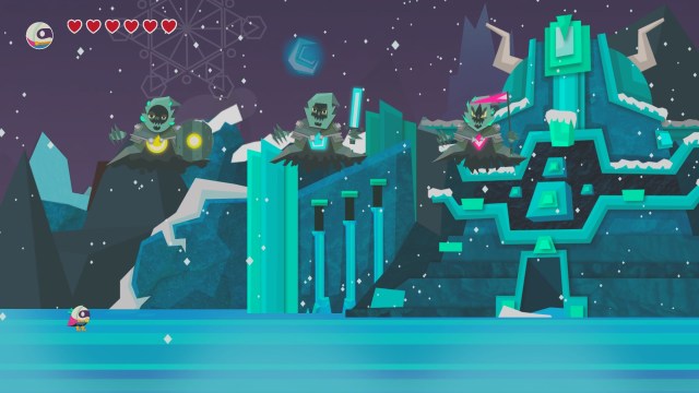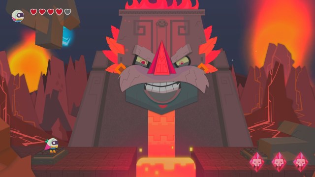 There are plenty of locales to jump around in. There is a lava locale that has a fun little moment at the end, a icy locale that specializes in swimming, etc. Each location is cut into 3 subsections that also incorporates a mini-boss and an end section boss. Both stages require the player to figure out what the fucking shape of the enemy is and beat it’s ass. Once you figure it out the boss fights become quite easy.