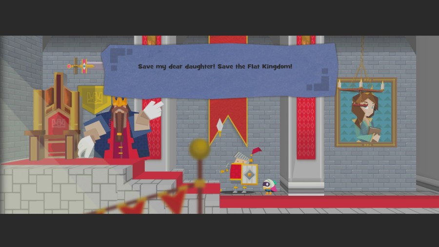 You are Flat, a piece of a paper, reminiscent of a knight, in a world that is currently in turmoil. A fox masked person has stolen a number of precious jewels that saved the 2D world in the past. The jewels had once saved the 2D from the dominance by the 3D. Sent out by the King, Flat and his shapeshifting powers go on an adventure to stop the bad guy and save the world.