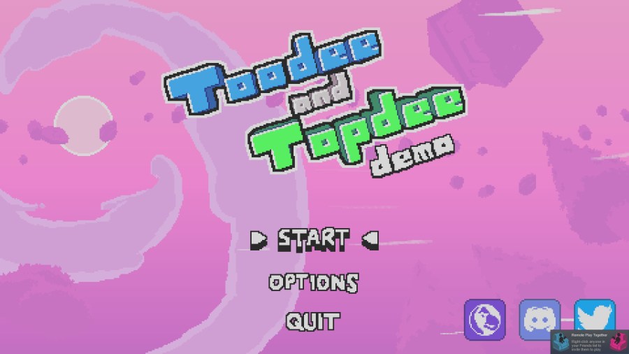 Toodee and Topdee is a 2D platformer mixed with a top down puzzler or something like that. Developed and eventually published by Dietzribi, the game has the good olé TBA behind it.