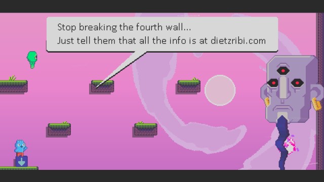 There is always a God in video games and in Toodee and Topdee, Aleph has created their world. Giving the true meaning to the semi-colon, it is the center of power in the universe. Around it were eight planets devoid of life. He fills them with life and has also created a very attractive looking mustached entity whose name is ToDo. Afraid of running out of work, Todo steals the Semicolon, sending the worlds collapsing into each other. Toodee in one world and Topdee in another, collide and the end result is a world where both inhabit. Having a conversation with a Glitch, both of our protagonists are now on an adventure to find the GODDAMN SEMICOLON.