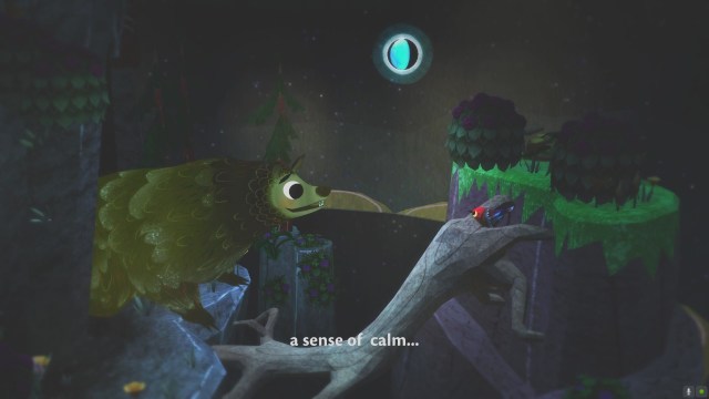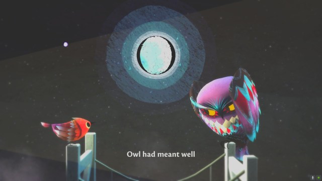 In Luna, Bird is awoken by the beautiful sound of a mysterious Owl. This song was enough for Bird to swallow the last sliver of the moon. Bird was then swooped away by the wind far from home and it is up to you to get Bird back home to complete the moon.