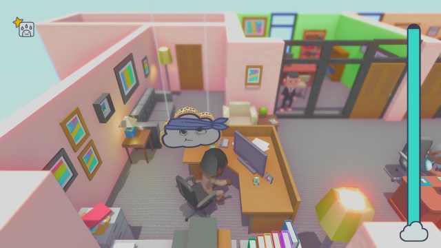 You can openly customize the face of our favorite cloud. I designed mine to look tired because I am, in fact, always tired. Upon completing levels, customization rewards are given out.