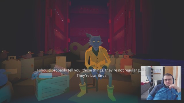 Your eyes are the eyes of an eleven-year old boy named Benny. Benny is dead and is riding the river with a wolfman who picks lost souls up from the river to escort them to the gate of the afterlife to be judged. You don’t remember much so you are sent back all the way to the beginning of your life; to retell it all from the beginning. The webcam mechanic begins here because whenever a metronome appears and you blink, your life jumps ahead.