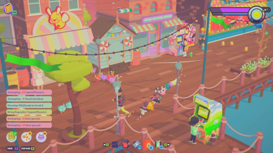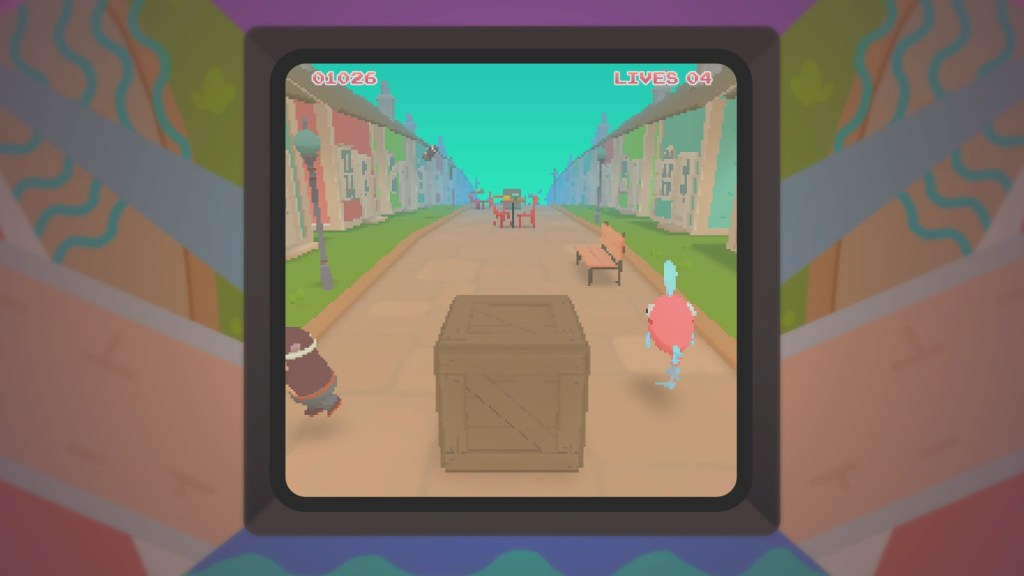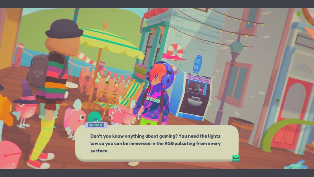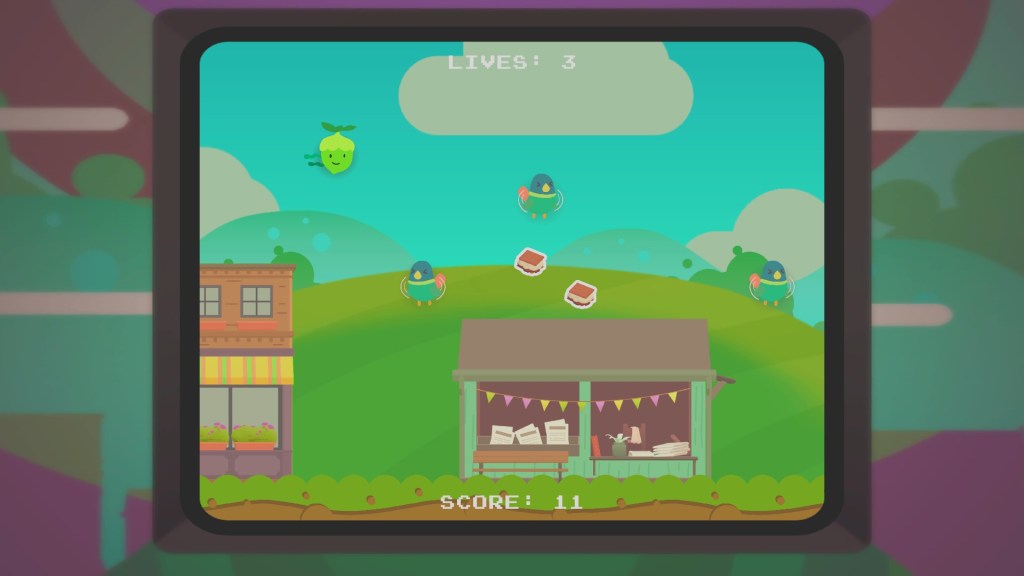Port Forward is blocked by a child gaming prodigy and the only way through is to knock their ass off the leaderboards. There are at least five arcade games to take a crack at, all of which require tokens to use. The arcade cabinets are largely based on games I’m sure many are familiar with. The games are difficult but never frustrating and reward the player with tickets to spend on cute attire for you and your ooblets.