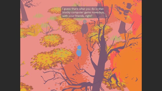 As noted above, it is penny bun season and your grandmother has brought the protagonist out to the forest to help her with collecting them. If you don’t know what penny buns are, they are super thick-looking edible mushrooms. It makes decent bread or risotto. Anyway, the player, being a child, is reluctant to help and stays quiet as her grandmother talks about life, Minecraft, and, most importantly, home life.