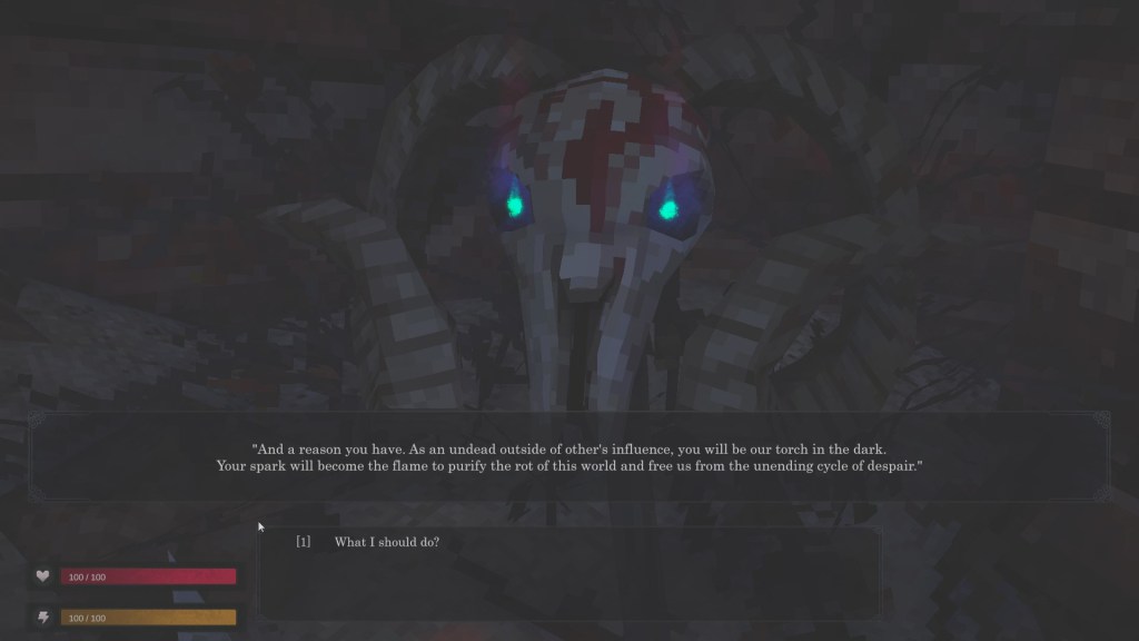 Safe areas exist to sleep, buy and sell items and talk to the ancient being that resurrected you. When given gold, the totem can grant you passive buffs for a small duration.