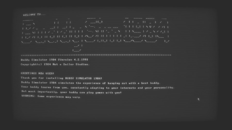 Buddy Simulator 1984 (Buddy Sim) is a psychological horror game developed and published by Not a Sailor Studios. It was released in February 2021, is only on PC, and retails for only $10.