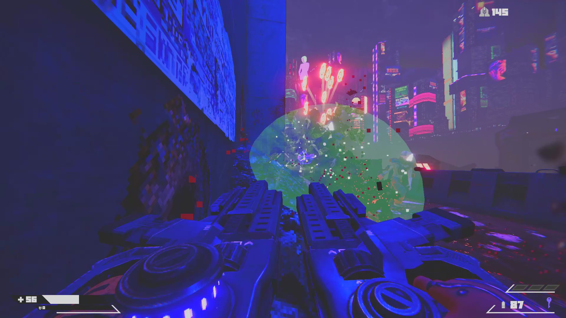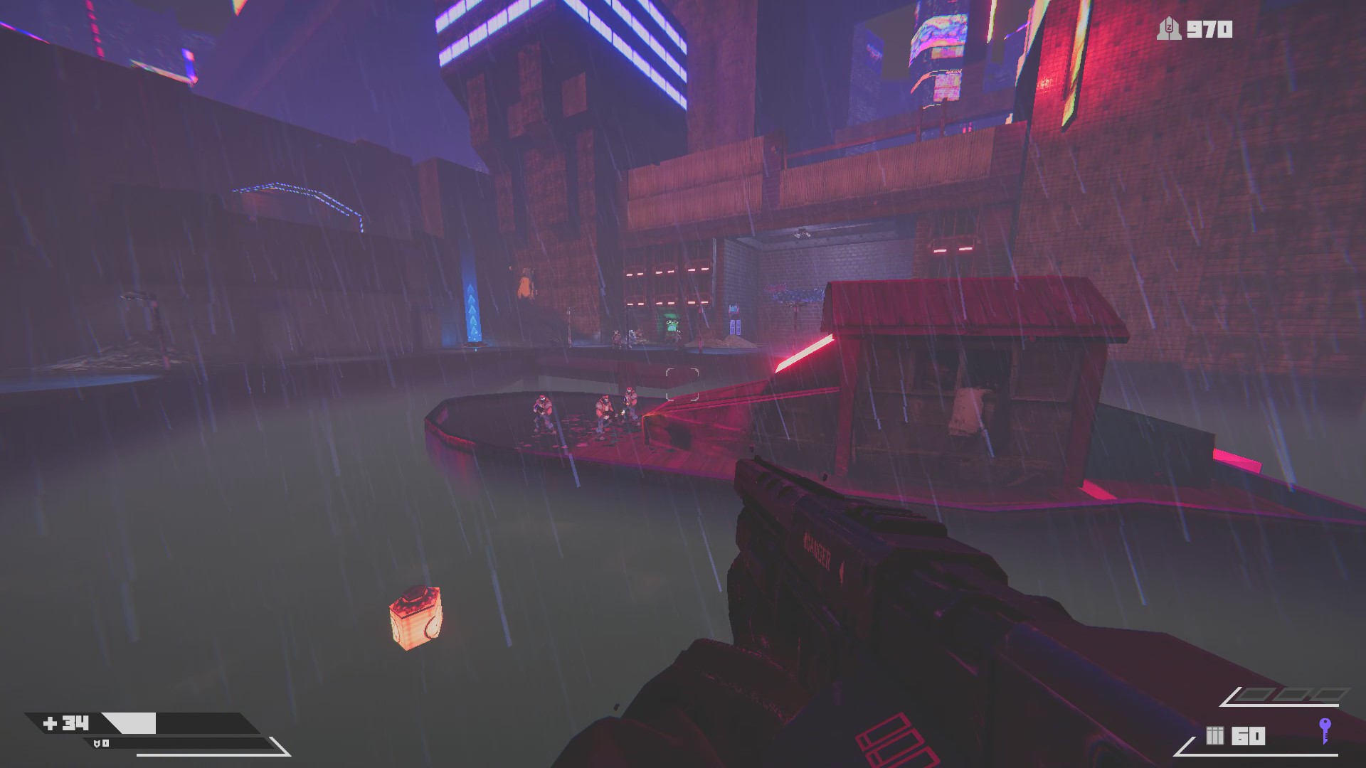 Levels are really intricate and are reminiscence of the games above with a cyberpunk coat of paint. I didn’t look to see if there was a map, I just went and if I found bad guys to shoot, I figured I was going in the correct direction, which I was. Lots of really fun action moments take place within the game. For instance, I was hopping across some boats to get to a key and when I returned, the boats and the opposite dock were brimming with enemies. jumping from boat to boat with a shotgun, just blowing baddies away was a very pivotal moment for me.