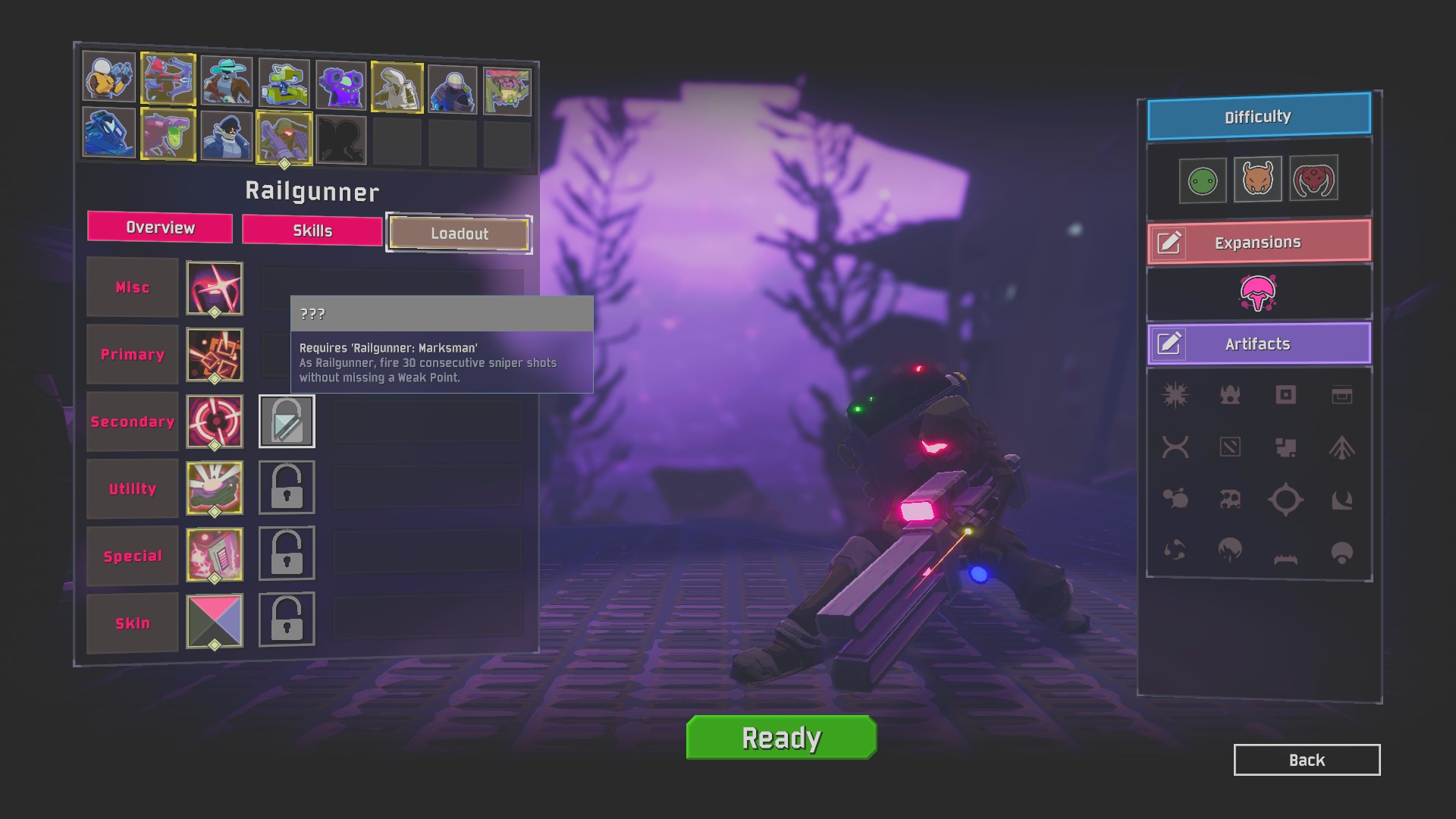 Overall, my love for Risk of Rain is back. The new characters are interesting enough to build around them either with the new items or the go to items (glasses, bleed etc). The Railgunner can have crowbars stacked on to deal a MASSIVE amount of damage, she can have the new item and increases both attack/movement speed to have a fast moving killer.