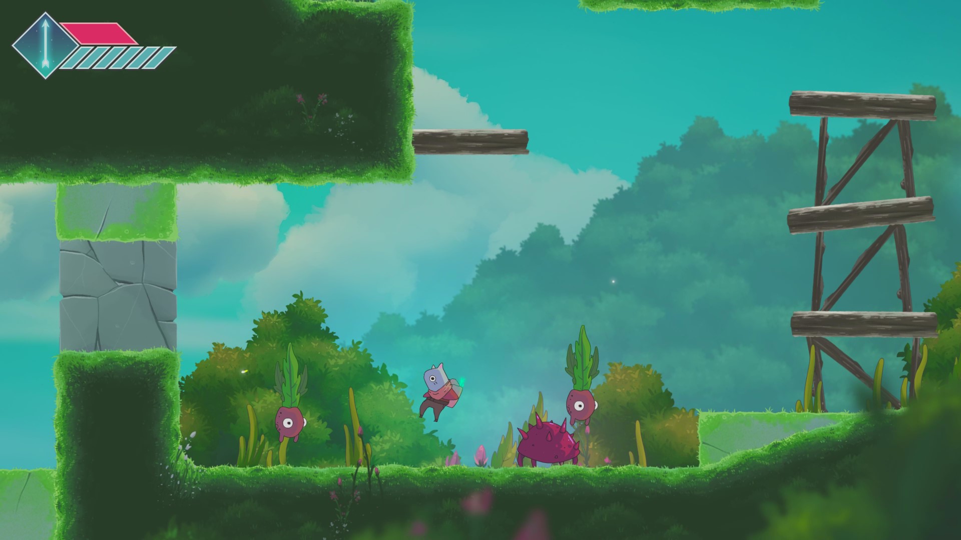 Environmental obstacles are not the only foe. There are enemies plentiful ready to take your life from you. Iko, at the start, has only three lives, and the enemies hit hard and fast. There are many enemy types in the demo. You have your base types that are simple to dispatch, then you have your mini-boss that challenges your ability to remember how you dispatched the previous enemies. One instance is what looks like to be a frog wearing a skull named the Grave Crawler.
