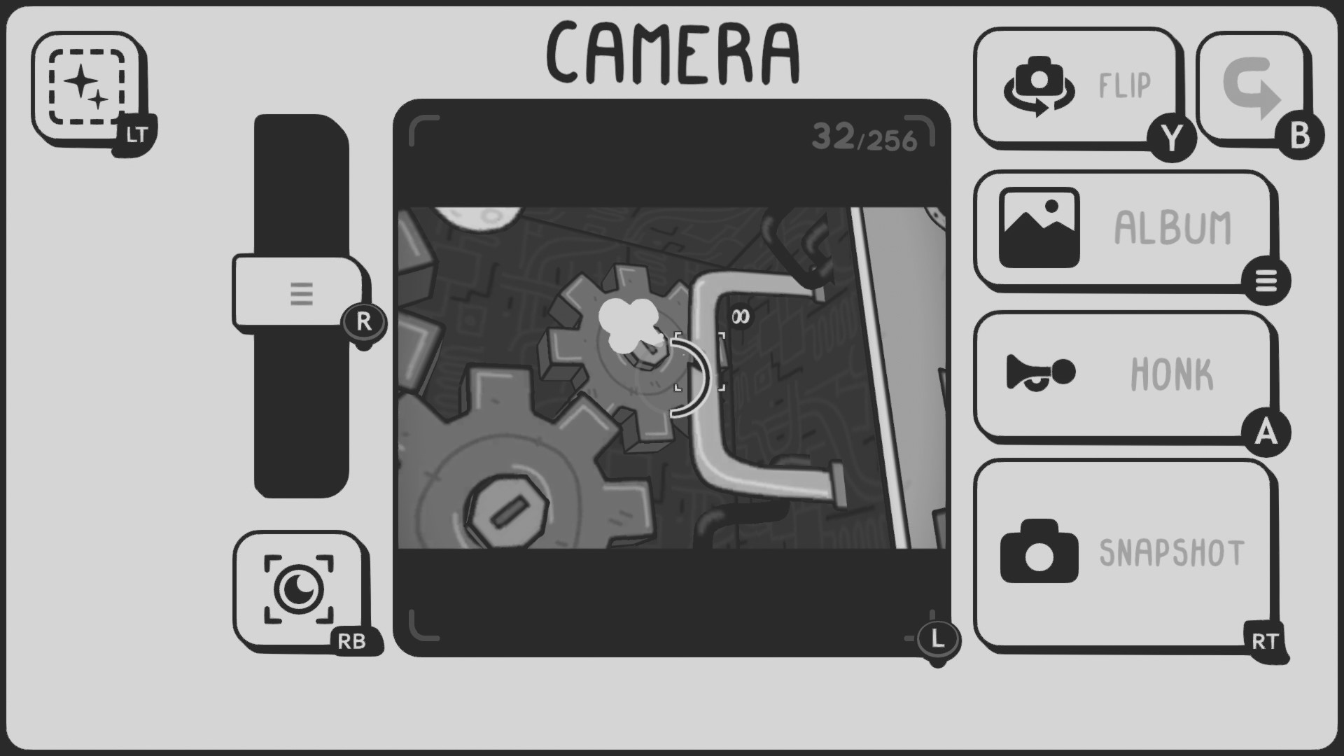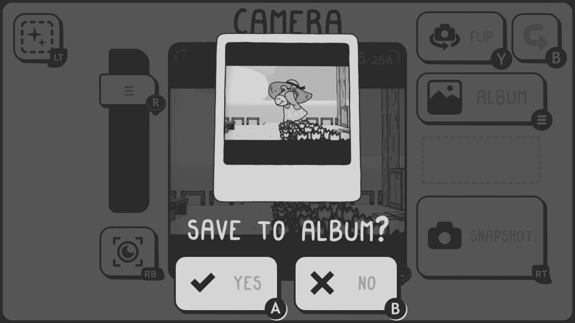 TOEM is a top-down, hand-drawn adventure outside of taking photos but first person when in photo mode. Each area is broken up into sections that the camera can easily pan over. There are areas that contain secrets, so look everywhere when adventuring. The game is easy on the eyes because 99% of the game is in black and white.