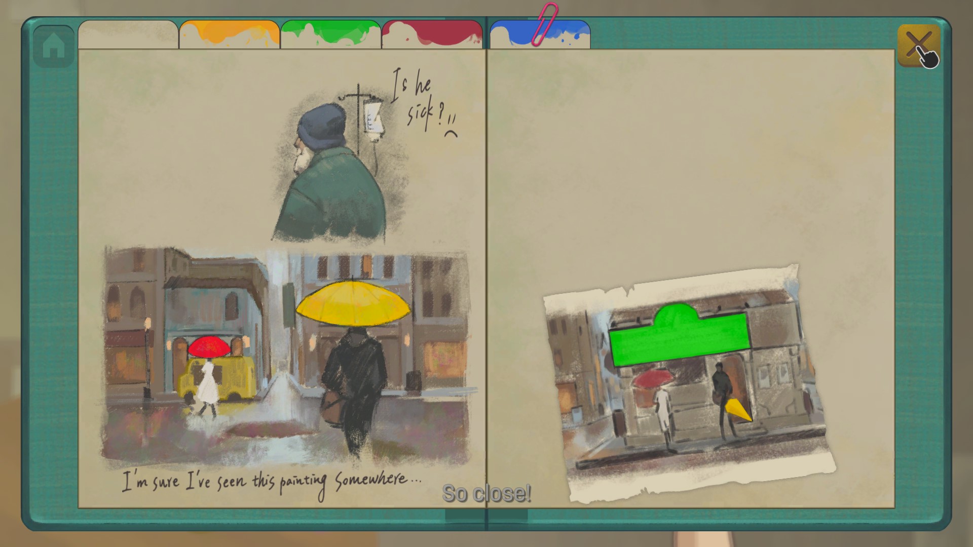 Behind the Frame is a fantastic game. My playthrough lasted around an hour and it was really something. I love the art style, the characters, and the art-themed puzzles. I pretty much enjoyed everything. None of the puzzles were incredibly difficult to navigate, solely because most of the time there was something to reference to assist you in completing it.