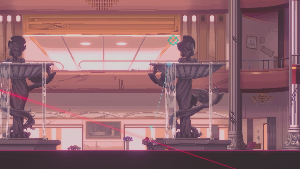 Pixel graphics and animations are choice. God damn this game look good. The sprawling backdrop of Mago City is gorgeous in its decrepitness. Neon-lit signs are scattered around signaling that businesses only 24 hours ago were bustling with people, but now they are left on for no one.