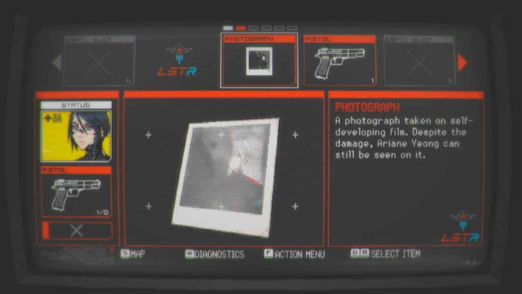Signalis really just looks like a PSP game. It has a combination of pixels and a lot of dark colors to give off the horror theme. Only in cutscenes does Elster have a face, but when they are walking around the ship everyone, including the enemies are faceless entities. The ship is a dark, gray area, but the items that you pick up are extremely colored and, at first interaction, really took me off guard, because I was unaware that bright colors could exist in a game that is so gray.