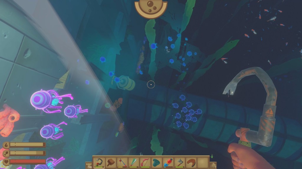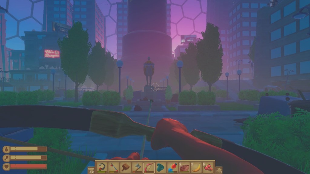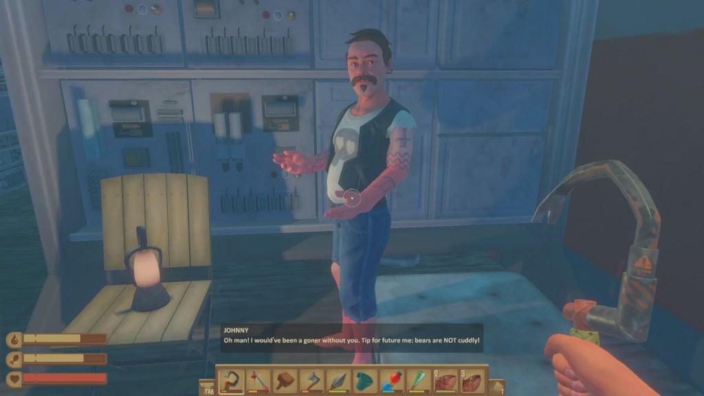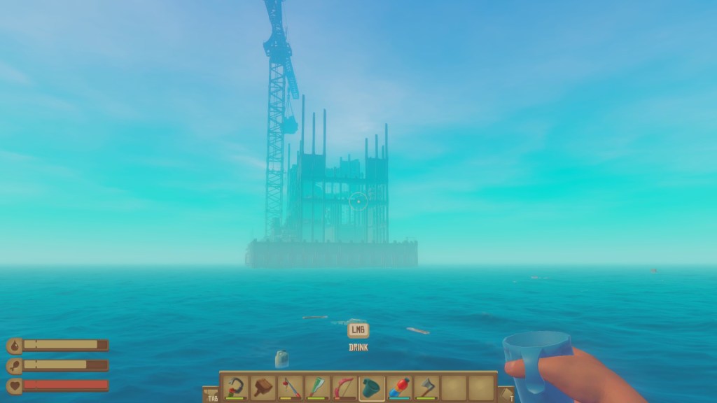 When I started Raft I was fully invested in the world that it gave me. The world has flooded and it is up to you to find your sister and, along the way, figure out the cause of this global disaster. It introduces the player to a number of interesting areas: The remnants of a national park infested with bears, a floating city, and even the crumbling remains of a skyscraper that was going to be outfitted to be a community. The first two of these areas had piqued my interest but as the game kept going, the story beats just began to feel more and more unimaginative. As you make your way to the end of the game, one of the last areas is in the artic that has been infested with… Polar bears instead of just regular bears like the National Park. It just felt like the game wanted to be over by then but it, in some fashion, just kept going.