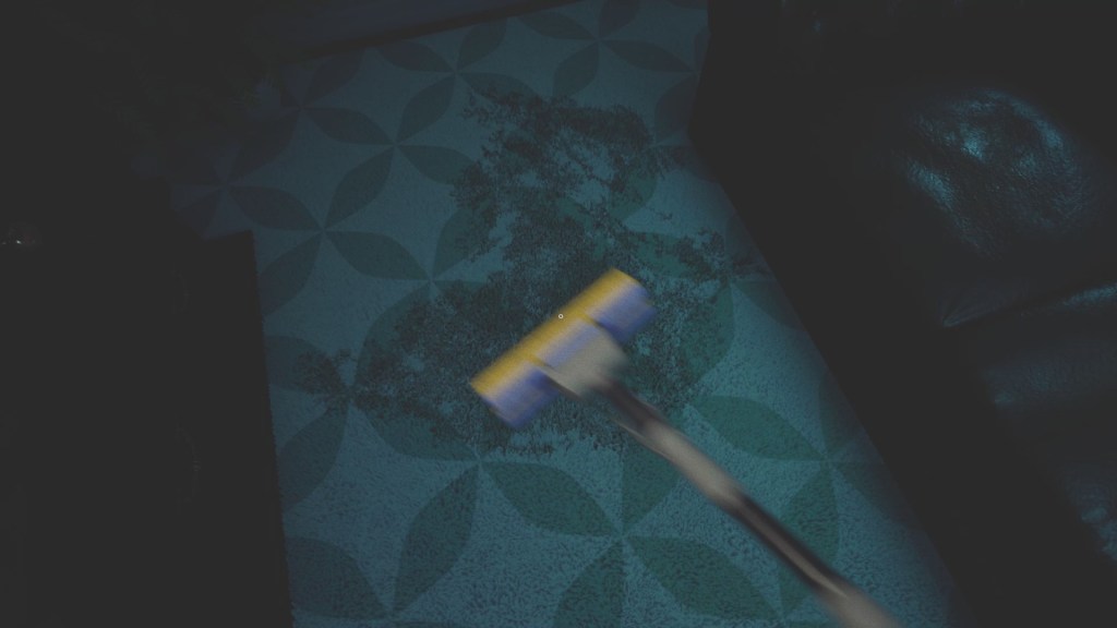 Late Night Mop introduces the two mechanics you will need to win the video game: Pick up the trash and mop those stains off the floor. There is a handy dandy piece of paper with all the areas of the house and when the cleaning of that room is done a checkmark appears signaling it is completed. You have the most powerful mop in the known universe as you mop what likes to be oil off of carpet floors.