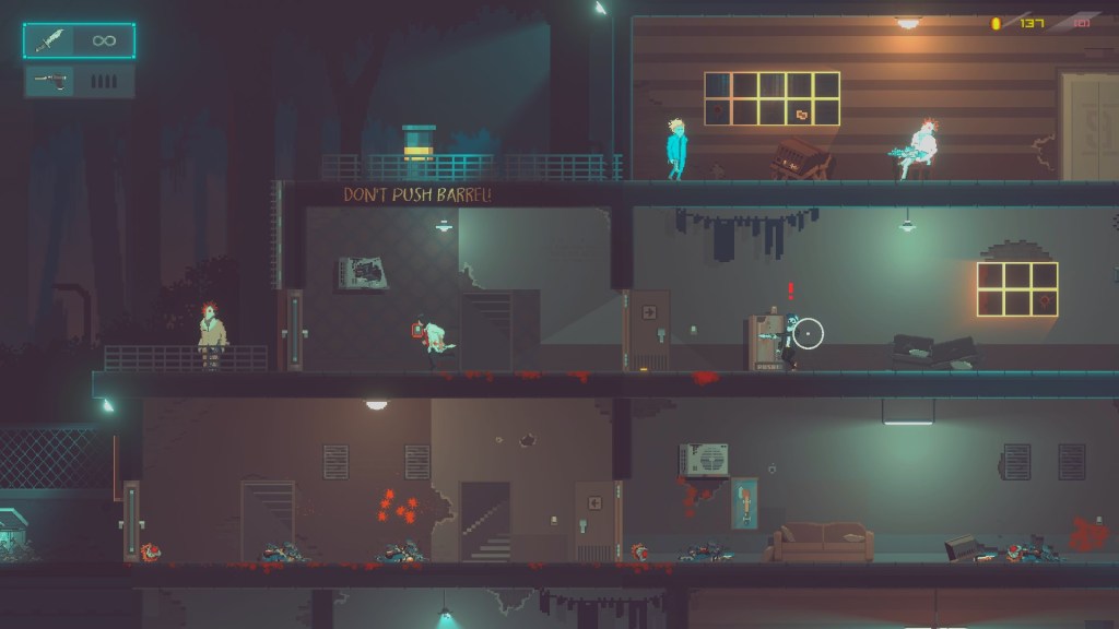 You are a man that resembles John Wick, but you are not him for you have lost your name. In my case my name is Agamemnon and I am the best-hired assassin. It looks like the story is hinged on an anonymous handler feeding information about the protagonist’s past after each level.