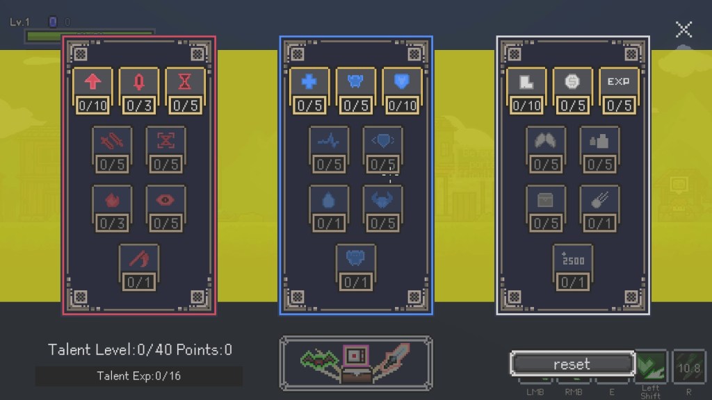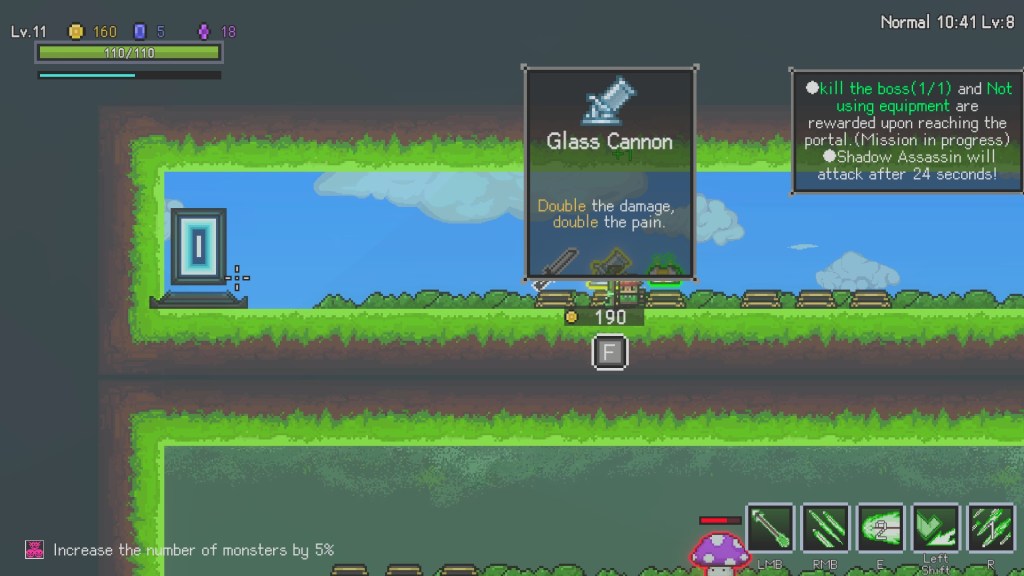 Another rogue-lit, another talk about abilities and how to make the game kneel to the player. you have your attack speed and damage boosts, critical hit chance and damage, percentage of a summons to spawn on kill, and the chance to attach bombs and bleed on hit. I immediately tried to max out my critical hit chance and attack speed, which worked until I got slammed by the boss. I then tried the knight with a summons on kill and that really didn’t work, but then I tried again with eh archer and it worked out really well, I was having fun. It looks like Portal Dungeon will allow the player to live their power fantasy, which I like ALOT.