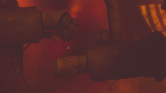 The second mechanic that is introduced within the demo is the ability to swap with objects. This mechanic is directly introduced after the extensive platforming tutorial, and it is introduced at the perfect time. Platforming sections turn into puzzles as the floors now are covered in mines and lasers are literally everywhere. Swapping can occur whenever the player uses the right mouse button to attach a device to an object and again to swap positions with that specific object. The mechanic really makes use of the environment around the player, as anything that is loose can be swapped with. Moving obstacles out of the way to get inside vents, using larger objects to block lasers, and even creating makeshift bridges are all at play here.