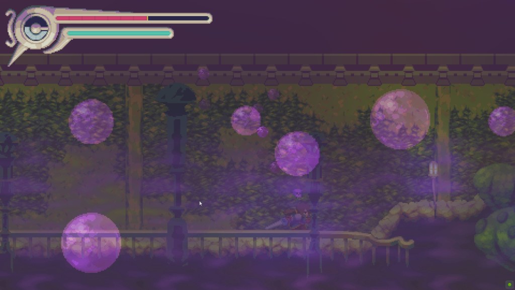 Vernal Edge‘s combat is where the game shines, though. Combat has a few dimensions. Vernal can cut baddies with her sword or use magic. The two alone can dispatch enemies, but when combining the two makes for some of the best combat. Executing combos and juggling enemies until that tiny health bar depletes feels so goddamn good. As the game progresses combat becomes more technical and challenges the player’s ability to adapt to situations and different enemy/boss playstyles. Boss enemies are where the player’s training pays off. Bosses hit fast and hit hard and leaving Vernal little wiggle room to recover. Vernal can also use her sword to regain health during combat to get the player out of sticky situations.