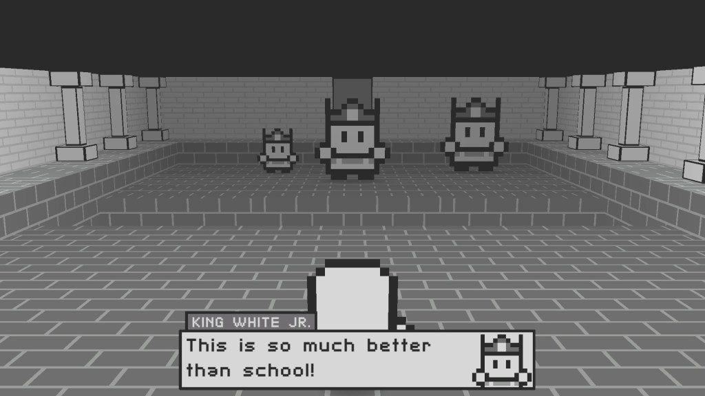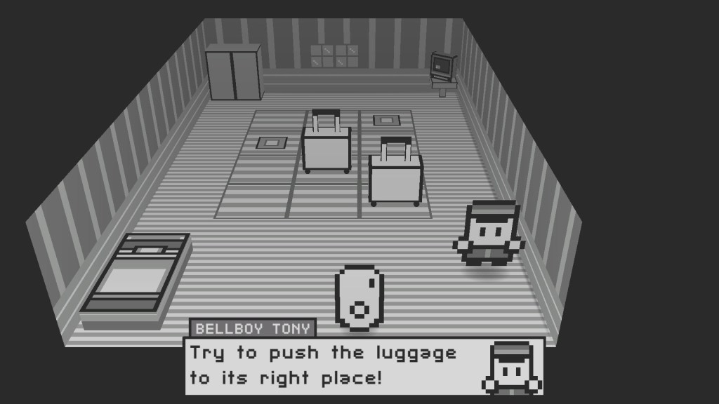 Restless Soul looks like a Pokemon game with a close-up camera. Nothing to see but black and white, the sprites are cute and sometimes the design really takes some neat turns.