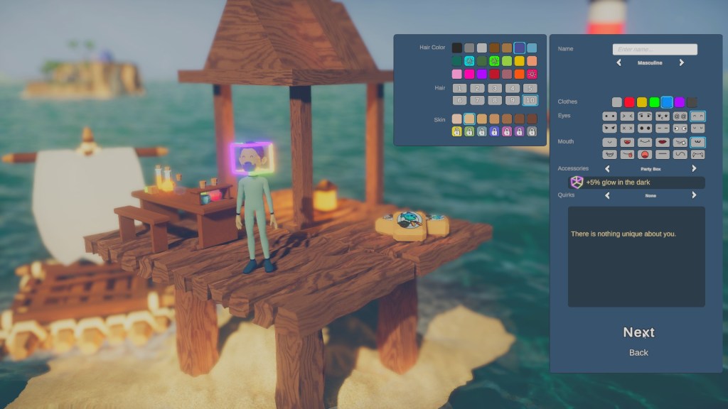 Havendock has a cute look going for it. Low poly design but with lots of colors to make the game look more attractive. The customization options in the beginning really can make your character look goofy and can really make it feel like your own adventure.