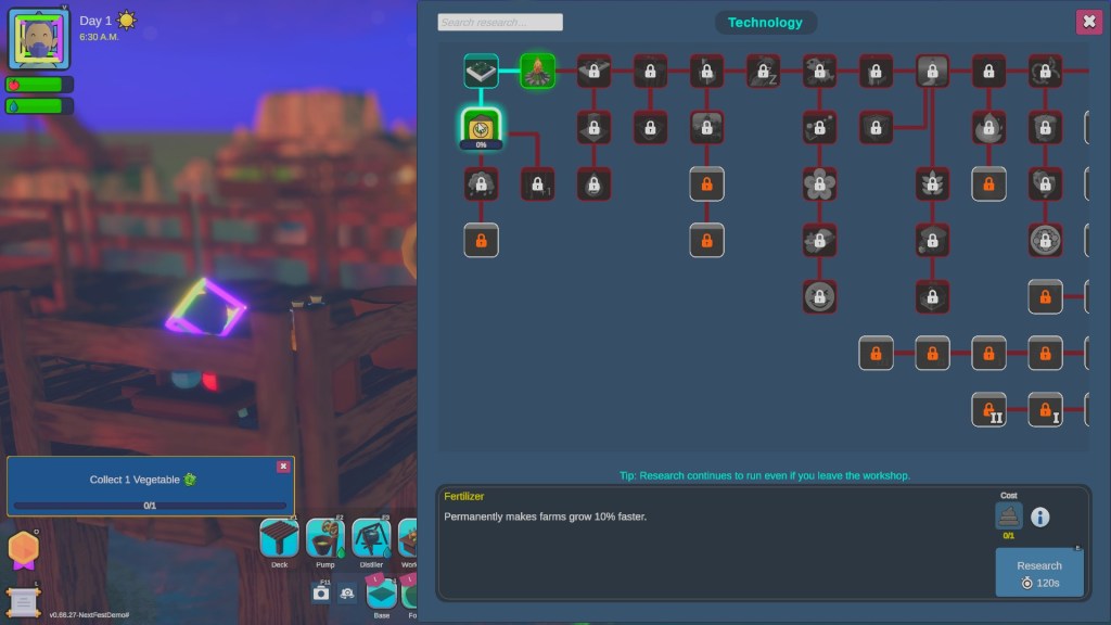 There is plenty to research and build in the demo and an absolute ton more that is locked until the purchase of the game.