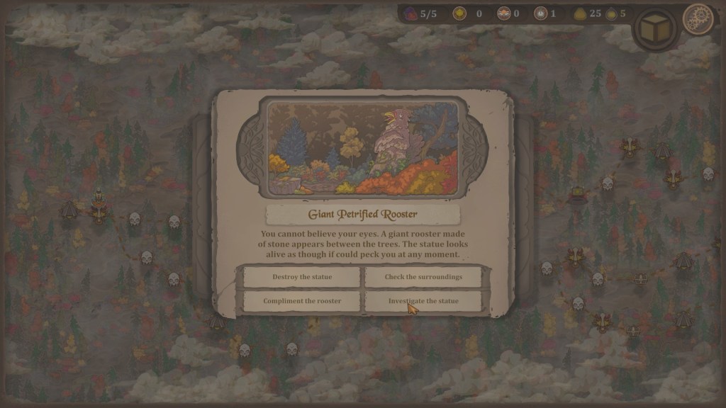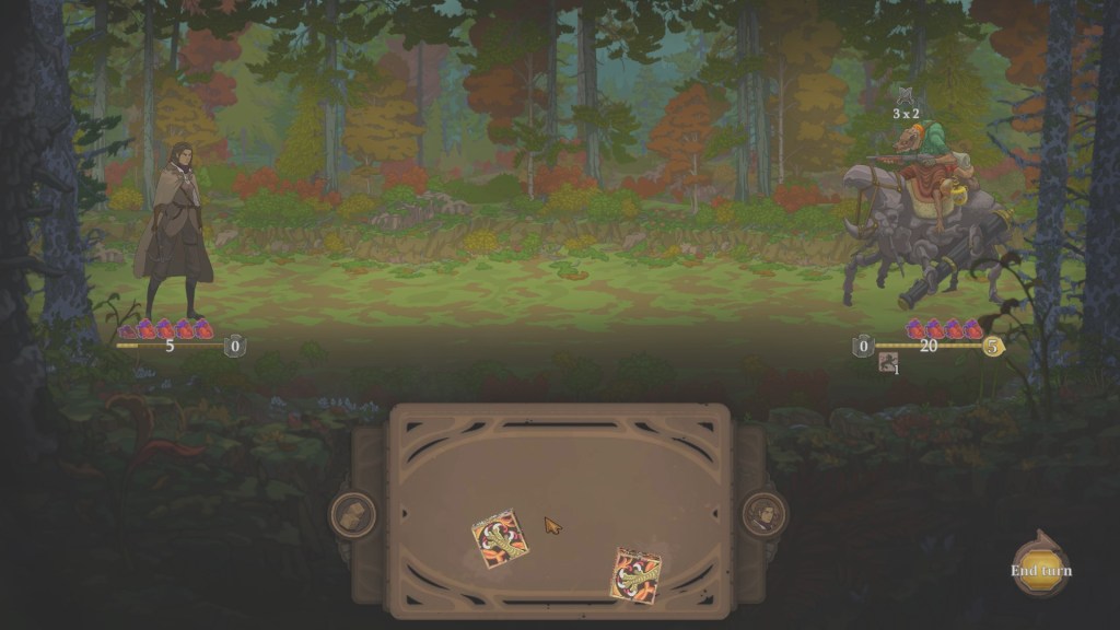 For a demo, the trail is incredibly long and arduous. You have a few different paths to take that eventually meet up at the same boss fight. Battles, events, and campfires that restore hearts are littered throughout each path.