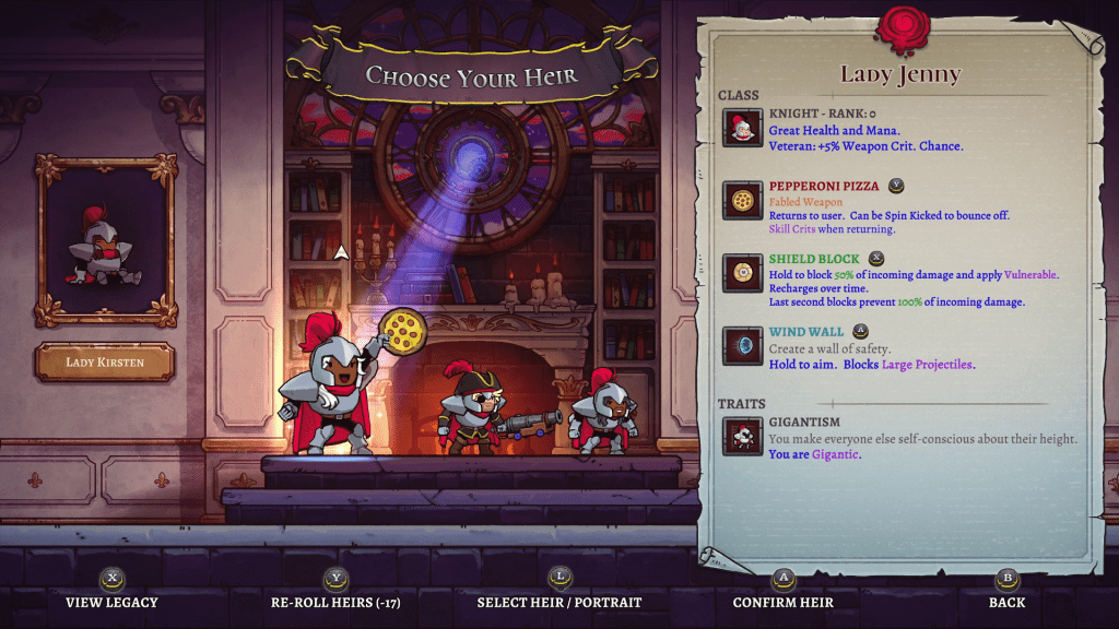 Rogue Legacy 2 is a game of skill now. The first game was challenging, but this time around the player has to master the spin kick, and if you fail to do that then the rest of the game is a wash. The spin kick is the most satisfying thing because later in the game you are able to recover dashes through this kick and soon after you are literally never touching the ground. The movement can never be outclassed because in Rogue Legacy 2 it has been perfected.