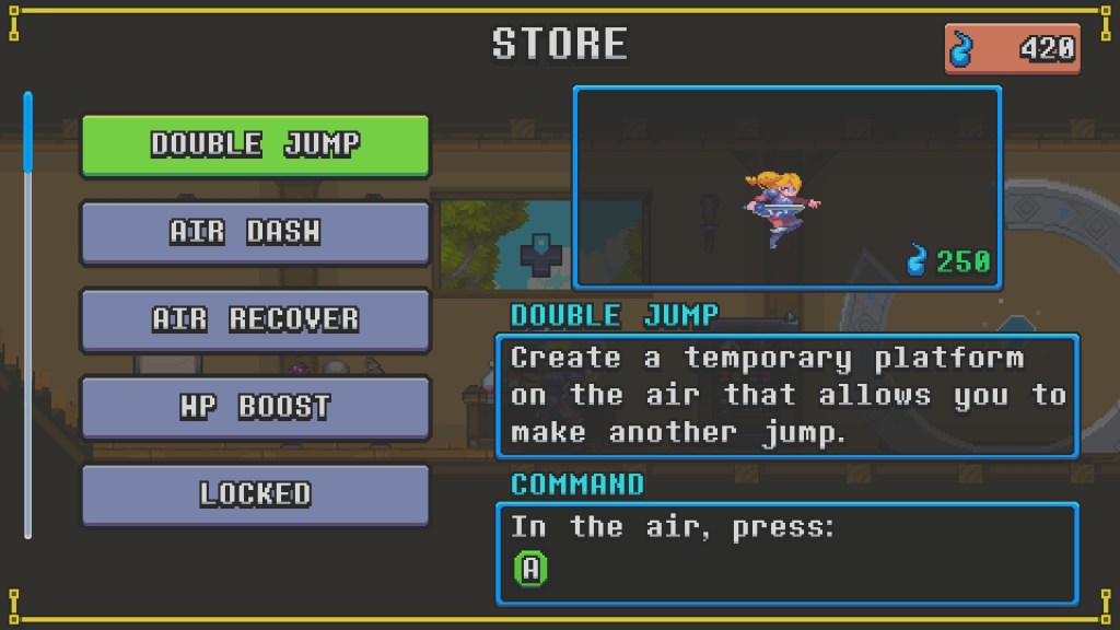 The gameplay has plenty of platforming and hack-and-slash. The game introduces both of these organically through regular encounters and conversations with the protagonist’s acquaintances. Bad guys spawn in, and you take them out with the ability to wield the sword and dance like an acrobat and take their souls. Use those souls to purchase upgrades to moves, magic, and abilities, rinse and repeat. I have nothing bad to say about combat in general because you can get into a fight and juggle enemies until their health bar goes to zero. The game encourages you to take combat in any way that the player pleases. There are five types of enemies introduced: two flying enemies, a shield and sword man, and a heavy swordsman. All have health bars and stamina bars that can be exhausted which results in a stun.