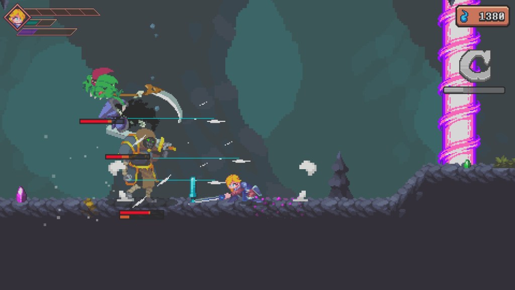 SoulQuest so far has a bunch of great attributes to it. The combat is so far above average, it looks great, and the platforming is fun. The only gripe I have is that when the player gets hit by an enemy, there is a window of not being able to move, which invites more enemies to essentially stun-lock you to death. I had gotten frustrated a few times but not bad enough to quit the demo.