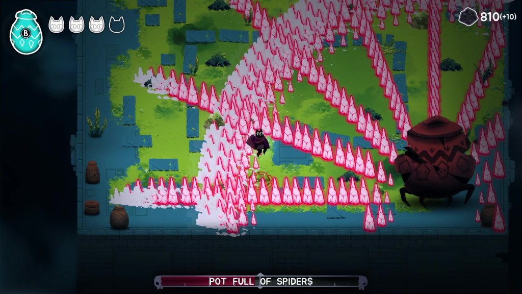 Pluto has a set amount of lives (3 to start) and can be upgraded, along with. It is important to upgrade because enemies hit hard. Each enemy has pretty readable attacks and takes a few hits to kill. Pluto uses their broom to swat and whack enemies until they explode into the garbage or whatever the currency is.