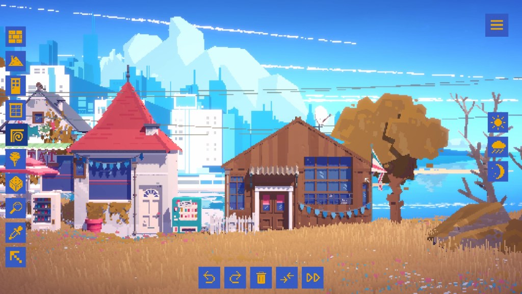 Summerhouse is simple: Build. The game opens up to a few different landscapes: City outskirts, desert, and a picturesque mountain region. Once you choose you are given the tools to create. Foundations, roofs, doors, windows, steps, and a wide range of extras to breathe life into what you create.