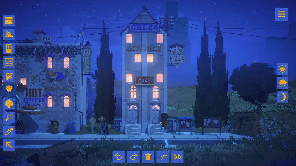 The pixel style is probably the best fit for this game. It makes the game look so incredibly beautiful. My favorite is the night cycle because the windows that you place will light up as if someone is inside. A simple but fantastic addition.